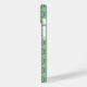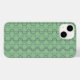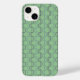 Esta capa de telefone tem um deco de arte design de círculos azuis e roxos conectados com linhas em um campo verde-claro.