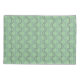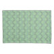 Este travesseiro tem um design de deco de arte de meio círculo azul e roxo se conectando com linhas em um campo verde-claro.