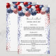 Decorado com balões patrióticos coloridos em azul vermelho e branco, azul e vermelho brilha. Fundo branco. Personalize e adicione seus nomes e o menu janto de casamento.