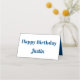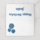 Placas com três balões em azul. A design inclui as palavras "Parabéns" e um nome. Todas as palavras podem ser personalizadas.