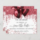 Um fundo branco chic decorado com pingos e balões vermelhos de brilho. Personalize e adicione uma data e nome/idade. O texto: Salvar a Data é gravado com um script de estilo com letra de tendência grande.