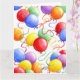 Grande cartão de aniversário de balões coloridos. Celebre o dia! Feliz aniversário. Uma placa de excelente para todas as idades desse dia especial.A arte original e o design de Audrey Ascenzo.