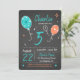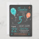 Convites de aniversário de chalkboard bonitos com balões. Personalize adicionando os detalhes da sua festa.
