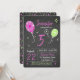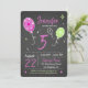 Convites de aniversário de chalkboard bonitos com balões. Personalize adicionando os detalhes do seu partido.