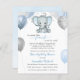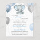 Este adorável impulso por chá de fraldas apresenta elefante de bebê azul e cinza com balões e confete. A parte traseira apresenta aquarela azul macia. Facilmente personalizado para seu evento clicando em personalizar. Perfeito se você precisa de um chá de fraldas na moda num orçamento.