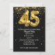 Balões mylares Dourados com estrelas confetti em preto para a 45ª festa de aniversário. O texto pode ser editado para um convite de festas de aniversário