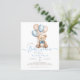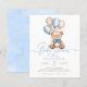 O orçamento tem balões e o convite para chá de fraldas de menino azul.