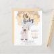 Um super fofo, moderno e adorável e neutro Oh Baby chá de fraldas com um fofinho de ursinho macio sendo erguido por balões prateados, dourados e amarelos, com um elegante convite para barato de caligrafia para escrita.