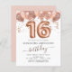 Orçamento Doce 16 (Dezesseis) Festa de aniversário Cor-de-Rosa - Balões Dourados Rosa e Convite de aniversário Confetti. Este é o perfeito 16.º Convite de Aniversário para uma Rosa moderna Dourada e brilhante Festa de aniversário brilhante brilhante brilhante brilhante. Entre em contato com o designer para encontrar itens personalizados correspondentes.