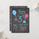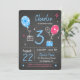 Convites de aniversário de chalkboard bonitos com balões e presentes. Personalize adicionando os detalhes do seu partido.