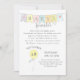 Aproveite este chá de aspersão para bebês projetado com uma faixa colorida de "Baby!" no topo, um balão amarelo, e um ursinho bonito segurando um guarda-chuva nas costas. Poema a ser personalizado, assim como modelos. Esta design é neutra em termos de gênero. Verifique a coleção correspondente na guia na parte superior da página. #babysprinkle