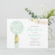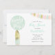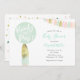 Pronto para o convite para o Chá de fraldas. Apresentando um balão aqua de aqua com bruxas coloridas longas e um falso confete de ouro ao fundo.