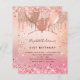 Para um aniversário elegante de 21 ruas (ou qualquer idade). Um fundo rosa dourado e gradiente rosa. Decorado com rosa dourado, brilho rosado, aspecto de pingar tinta e balões. Personalize e adicione um nome, 21 anos e detalhes da festa. O nome é escrito com um script de estilo manuscrito