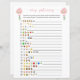 Este jogo emoji de chá de fraldas é perfeito para um chá de fraldas ou um bebê aspersor. Este jogo apresenta balões cor-de-água rosa e sage macio e folhas verdes de eucalipto e botânicos verdes, além de um arco fofo. Os vossos hóspedes podem resolver os nomes dos livros infantis e das rimas de infantários descodificando os emoticons. CHAVE DE RESPOSTA: 1. Cinco Pequenos Macacos Pulando Na Cama 2. Twinkle Twinkle Pequena Estrela 3. Itsy Bitsy Spider 4. Peixe Arco-Íris 5. A Tão Faminta Lagarta 6. O Leão, A Bruxa e o Guarda-roupa 7. Dickory Dock 8. Eu espio 9. Ovos Verdes e Pressão 10. Winnie The Pooh 11. A Web 12 da Charlotte. Alice no País das Maravilhas 13. Se Dar A Um Rato Um Cookie 14. Diddle Diddle 15. Havia uma velha mulher 16. Um Peixe, Dois Peixes, Peixe Vermelho, Peixe Azul 17. Onde As Coisas Selvagens São 18. Cachinhos dourados e os Três Ursos 19. Os Três Pequenos Porcos 20. O velho MacDonald tinha uma Fazenda. Você pode personalizar este design clicando em "Personalizar este modelo" ou se quiser alterar a fonte, as cores ou organizar os elementos design de uma forma diferente, você pode clicar em "Editar usando a Ferramenta Design".