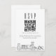 Um cartão de código de QR rsvp de casamento com uma bela linha estilizada representando a cidade de Baltimore. Substitua o código QR por um que apresente um link para o seu site para ajudar a facilitar a resposta ao evento de seu casamento para seus futuros convidados.