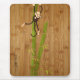 Tapete do rato de vista de madeira de bambu do divertimento com os gráficos de algumas hastes de bambu do verde e os gráficos dos desenhos animados de um macaco engraçado. O texto marrom feito sob encomenda está pronto para personalizar para serir suas necessidades. Tapete do rato bonito que faz uma grande ideia do presente. A madeira de bambu de harmonização que olha acessórios de desktop está disponível.