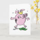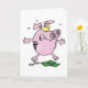 Este design é um banco de porcos cor-de-rosa com dinheiro. O porquinho está parado com um olhar engraçado no rosto. Este banco cor-de-rosa com design de dinheiro parece excelente com estes Cartões de Saudação