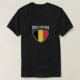A bandeira nacional da Bélgica é infundida em forma de escudo e sentada abaixo do nome do país.