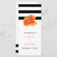 Cerimônia de casamento e programa de festas elegantes. Apresenta uma flor de papoila coral lindíssima e listras pretas e brancas.