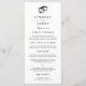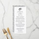 O menu Chic Black and White do casamento mostra seus cursos iniciais, entrevistas e sobremesas em letras elegantes, acentuados com uma ilustração desenhada à mão de uma banda de casamento entrelaçada e anel de noivado de diamantes. Use os campos modelo para adicionar as informações do menu e clique em "Personalizar" para reposicionar os elementos, se necessário. Precisa de ajuda? Entre em contato comigo através do link "Perguntar a este Designer" nesta página.