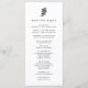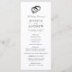 Nosso programa de núpcias preto e branco apresenta os detalhes de sua cerimônia em letras elegantes, acentuado com uma ilustração feita à mão de uma banda de núpcias e anel de noivado de diamante. O lado inverso lista os membros da sua festa de casamento com campos de texto facilmente editáveis, representados por uma pequena ilustração de buquê. Use os campos modelo para adicionar informações sobre a sua cerimônia e a parte nobre e clique em "Personalizar" para reposicionar os elementos, se necessário.