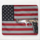 Está aqui uma imagem de minha arma 9mm semi-autmatic com a bandeira americana. Mostra que nós, as pessoas dos E.U. temos o direito ter uma arma se proteger e outro.