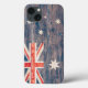 A bandeira australiana em tinta desbotada em planks de madeira está neste artigo. A bandeira tem a bandeira da União (ou bandeira da União) no canto superior esquerdo e seis estrelas num campo azul.