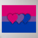 Papel poster (Semibrilho) com bandeira do orgulho da bissexualidade com faixas cor-de-rosa, roxa e azul, design de padrão listrado com corações, design de orgulho duplo