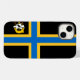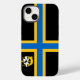 iPhone 14 Case com design com uma bandeira do condado histórico da Caitidade, na Escócia, Reino Unido Excelente; bandeira negra com cruz nórdica azul e amarela e uma ilustração de um navio com um riacho na vela superior