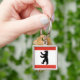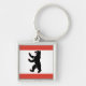 Chaveiro quadrado com bandeira de Berlim, bandeira estatal com faixas horizontais de vermelho e branco, com ilustração de um urso preto no centro