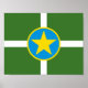 Poster com bandeira de Jackson, Mississippi; bandeira verde com estrela amarela em um círculo azul