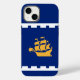 Caso do iPhone 13 com a bandeira de Quebec City, capital do Quebec, Canadá. Uma bandeira azul com contorno branco e um navio amarelo no centro