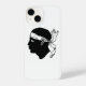 A bandeira da Córsega retrata a cabeça de uma Moor a preto, vestindo uma bandana branca sobre os olhos, sobre um fundo branco. A bandeira da Córsega é um símbolo de liberdade.