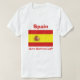 Um título e um slogan editáveis acompanham a brasão em uma banda amarela com as bandas vermelhas acima e abaixo da bandeira espanhola na parte dianteira deste t-shirt. A parte traseira indica um mapa detalhado da espanha.