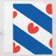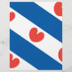 Bandeira da Frísia, uma província dos Países Baixos. É constituído por faixas diagonais azuis e brancas; nas listras brancas estão a pompa vermelha, folhas da lírio-d'água amarela, que podem lembrar um coração, mas, de acordo com as instruções oficiais, "não devem ter forma cardíaca".