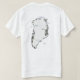 A frente desta t-shirt tem uma pequena bandeira gronelandesa com o seu círculo familiar de vermelho e branco sobre bandas de branco e vermelho, enquanto a parte de trás apresenta um mapa alivio da Gronelândia. Disponível em t-shirts, camisas de suor, polos, capas compridas e muito mais.