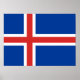 A bandeira da Islândia (islandês: íslenski fáninn) foi oficialmente descrita na Lei n. º 34, promulgada em 17 de junho de 1944, dia em que a Islândia se tornou uma república. A lei intitula-se "A Lei da Bandeira Nacional dos Islandeses e das Armas do Estado" e descreve a bandeira islandesa da seguinte forma: A bandeira nacional civil dos Islandeses é azul como o céu com uma cruz branca de neve e uma cruz vermelha feroz com a cruz branca. Os braços da cruz estendem-se até ao bordo da bandeira e a sua largura combinada é de 2/9, mas a cruz vermelha 1/9 da largura combinada da bandeira. As áreas azuis são retângulos retos, as superfícies retilíneas são paralelas e as superfícies retilíneas externas tão largas quanto elas, mas o dobro do comprimento. As dimensões entre largura e comprimento são 18:25. A primeira bandeira nacional da Islândia foi uma cruz branca sobre um fundo azul profundo. Foi mostrado pela primeira vez em desfile em 1897. A bandeira moderna data de 1915, quando uma cruz vermelha foi inserida na cruz branca da bandeira original. Esta cruz representa o cristianismo. Foi adotada e tornou-se a bandeira nacional quando a Islândia se tornou independente da Dinamarca em 1918. Para as pessoas islandesas, a coloração da bandeira representa uma visão da paisagem do seu país. As cores representam 3 dos elementos que compõem a ilha. Vermelho é o fogo produzido pelos vulcões da ilha, branco lembra o gelo e a neve que cobrir a Islândia, e azul para o oceano Atlântico. A bandeira estadual (Tjúgufáni) difere da civil, que os retângulos externos são três vezes maiores que os retângulos laterais do assento e divididos na extremidade, cortados diretamente dos cantos externos até sua linha central. Cortando as arestas interiores dos retângulos exteriores a 4/7 do comprimento exterior e a 3/7 do comprimento interior dos retângulos exteriores. Quando este corte encontra a borda da cruz vermelha, é cortado na vertical.