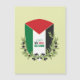 "A bandeira palestina cercada por ramos de oliveira com a frase 'Nós Iremos Retornar."