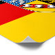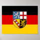 Poster com pavilhão do Sarre; design com tricolor horizontal a preto, vermelho e amarelo (ouro), com casaco de armas do Estado no centro