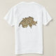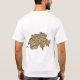 Um título e um slogan editáveis acompanham a cruz branca centrada em um fundo vermelho da bandeira suíça na parte dianteira deste t-shirt. A parte traseira indica um mapa detalhado da suiça.