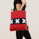 Tote Bag com design com bandeira de Amesterdã, capital dos Países Baixos, bandeira vermelha e negra com três cruzes de Andrew com Santo branco no centro