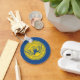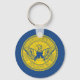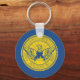 Chaveiro de botões com pavilhão da cidade de Atlanta, Geórgia; bandeira azul com selo amarelo com ilustração da ascensão de Phoenix das chamas