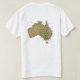 Um título e um slogan editáveis acompanham as estrelas brancas da cruz do sul na bandeira azul da bandeira australiana na parte dianteira deste t-shirt. A parte traseira indica um mapa detalhado de Austrália.