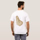 Um título e um slogan editáveis acompanham o tridente preto sobre bandas azuis e amarelas da bandeira barbadense na parte dianteira deste t-shirt. A parte traseira indica um mapa detalhado de Barbados.