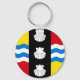 Chaveiro com uma bandeira do condado histórico de Bedfordshire, Inglaterra, Excelente-Bretanha; bandeira vermelha e dourada com banda vertical preta com vieiras brancas de árvore no centro