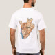 A parte dianteira deste t-shirt carrega uma bandeira burundiana pequena com suas listras brancas diagonais familiares sobre vermelho e verde, quando a parte traseira indicar um mapa de alivio de Burundi. Disponível em t-shirt, em camisolas, em polo, em longo-Capas e em mais.