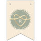 Bandeirolas de casamento verde sálvia simples, elegantes, minimalistas e modernas, com monograma e coração de corda dourada.