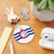 Chaveiro de botão com bandeira da cidade de Cincinnati, Ohio; bandeira branca com três ondas azuis com "C" vermelho no centro