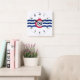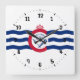 Relógio com bandeira da cidade de Cincinnati, Ohio; bandeira branca com três ondas azuis com "C" vermelho no centro