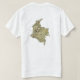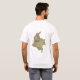Um título e um slogan editáveis acompanham as bandas horizontais do amarelo, as azuis e as vermelhas da bandeira colombiana na parte dianteira deste t-shirt. A parte traseira indica um mapa detalhado de Colômbia.